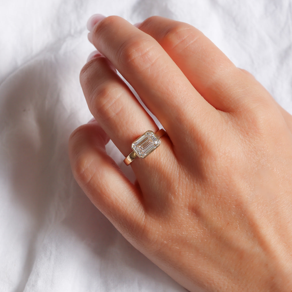 טבעת אמרלד ירוקה | זהב לבן