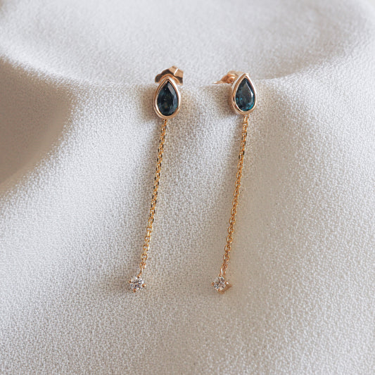 עגילי טיפה נופלים | טופז כחול ויהלום