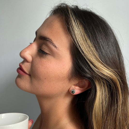 עגילי פנינה שחורה ויהלומים