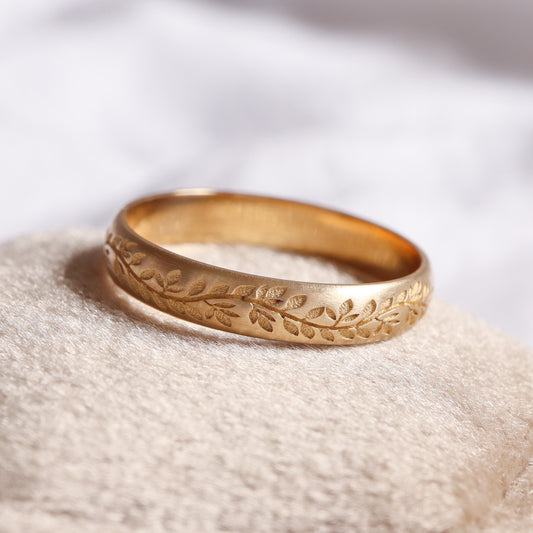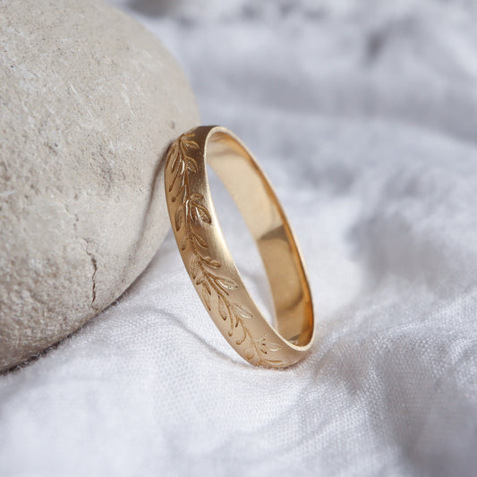 טבעת נישואין | חריטות עלים - גימור מבריק