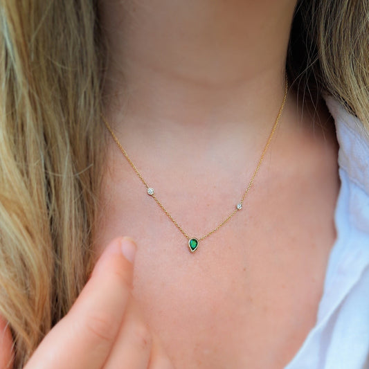 שרשרת זהב | שלושה אמרלדים ויהלום