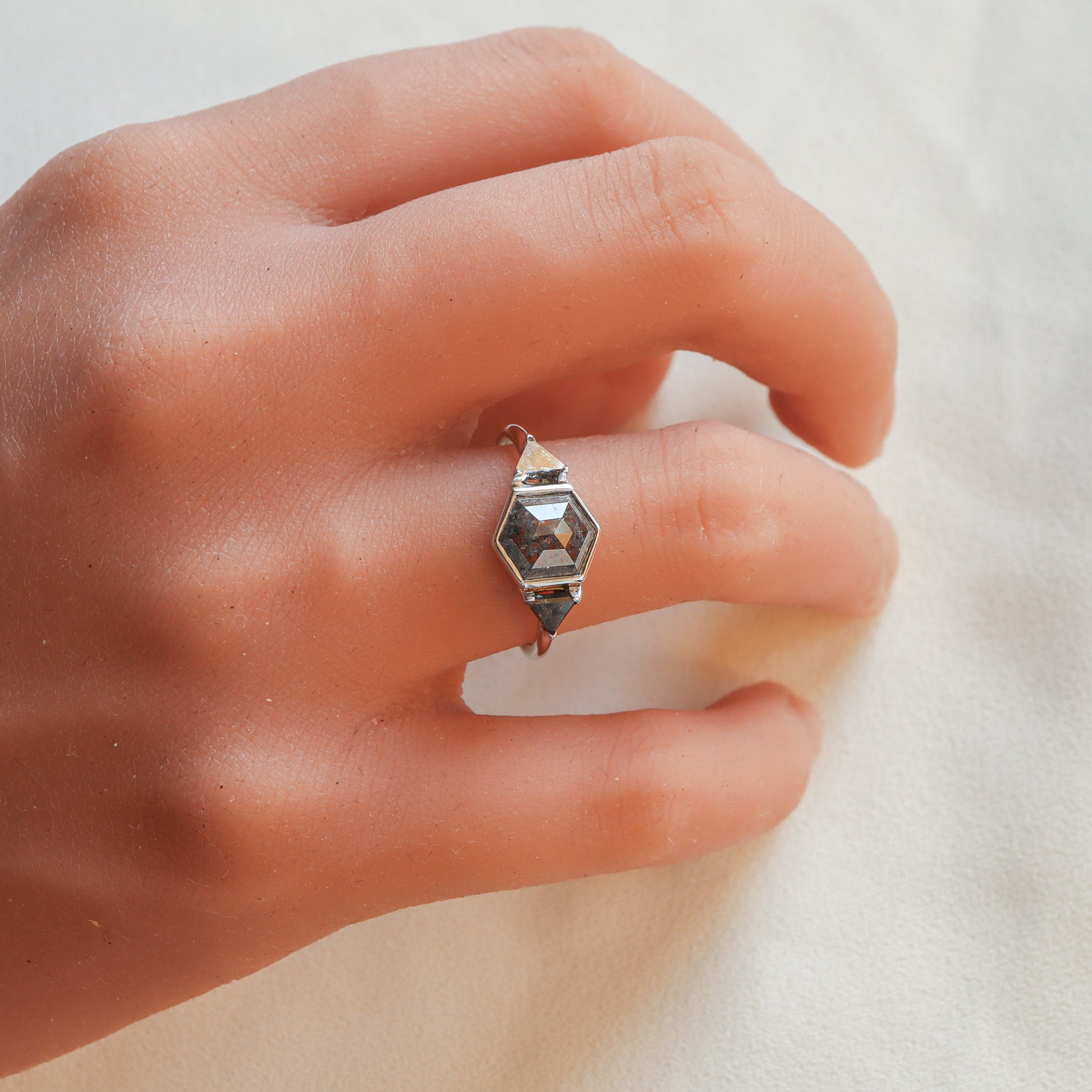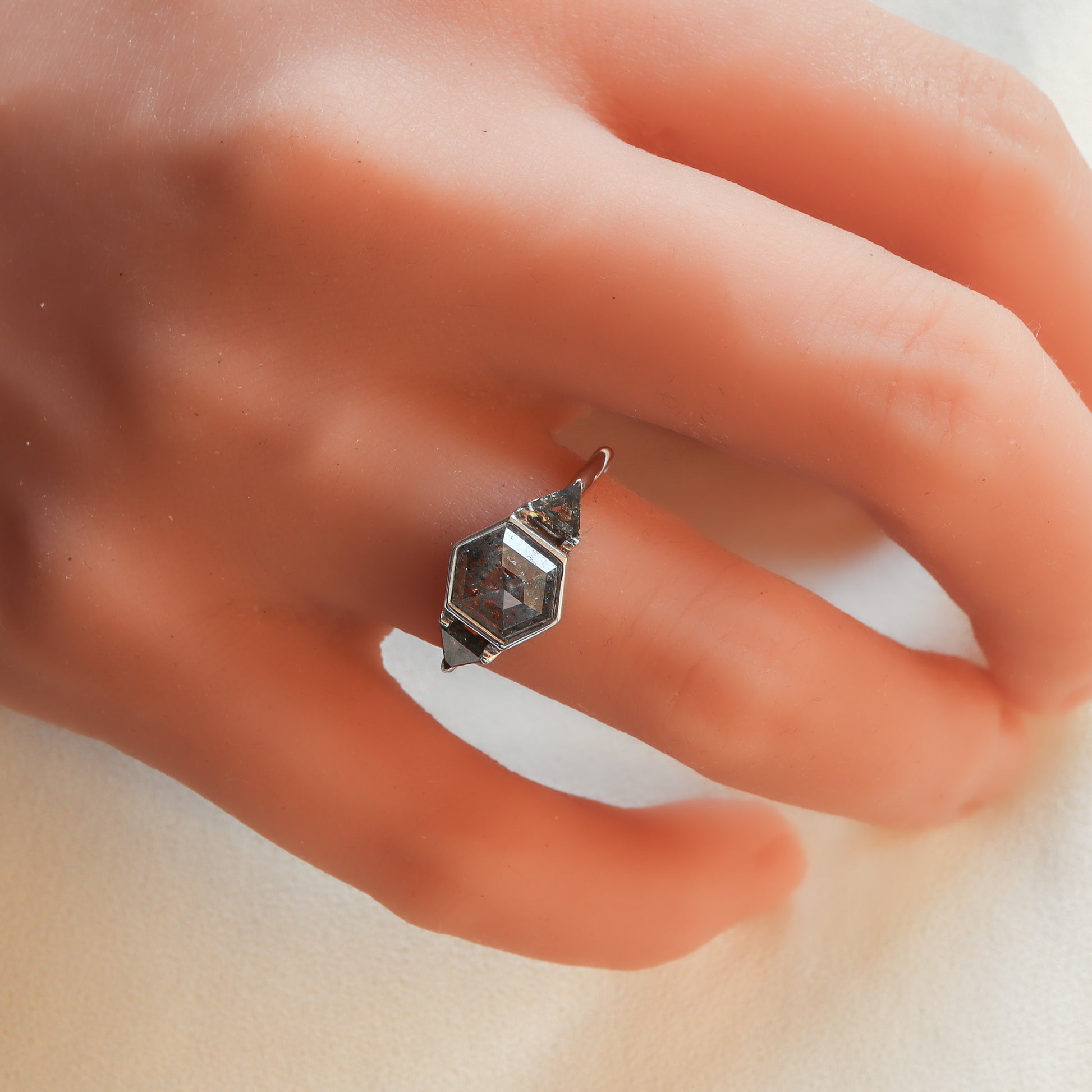 טבעת יהלומים משושה ומשלושים | Salt & Pepper