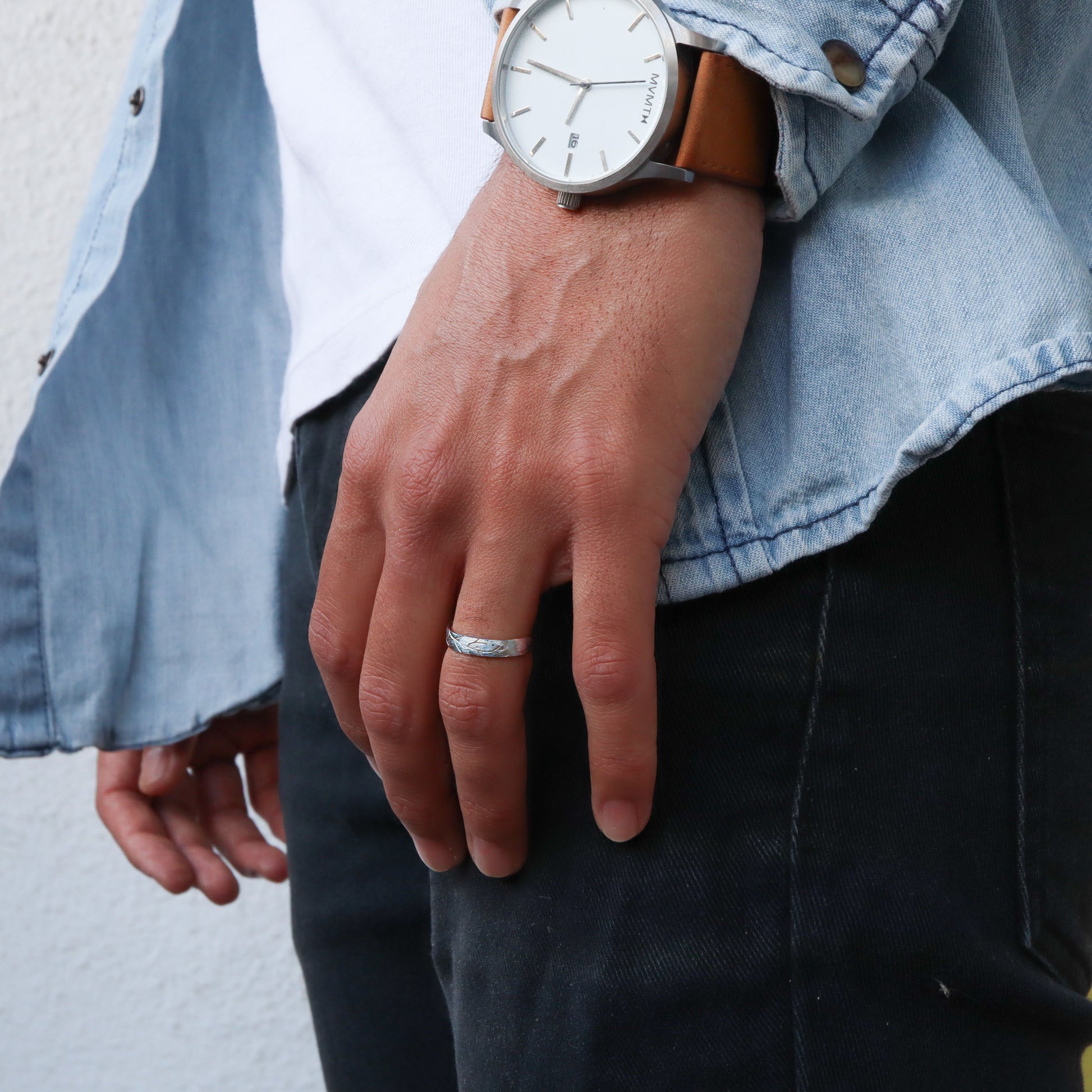 הגימור המחוספס מעניק לטבעת מראה טבעי ואותנטי, שמזכיר שהיופי נמצא גם בפשטות ובמהות.