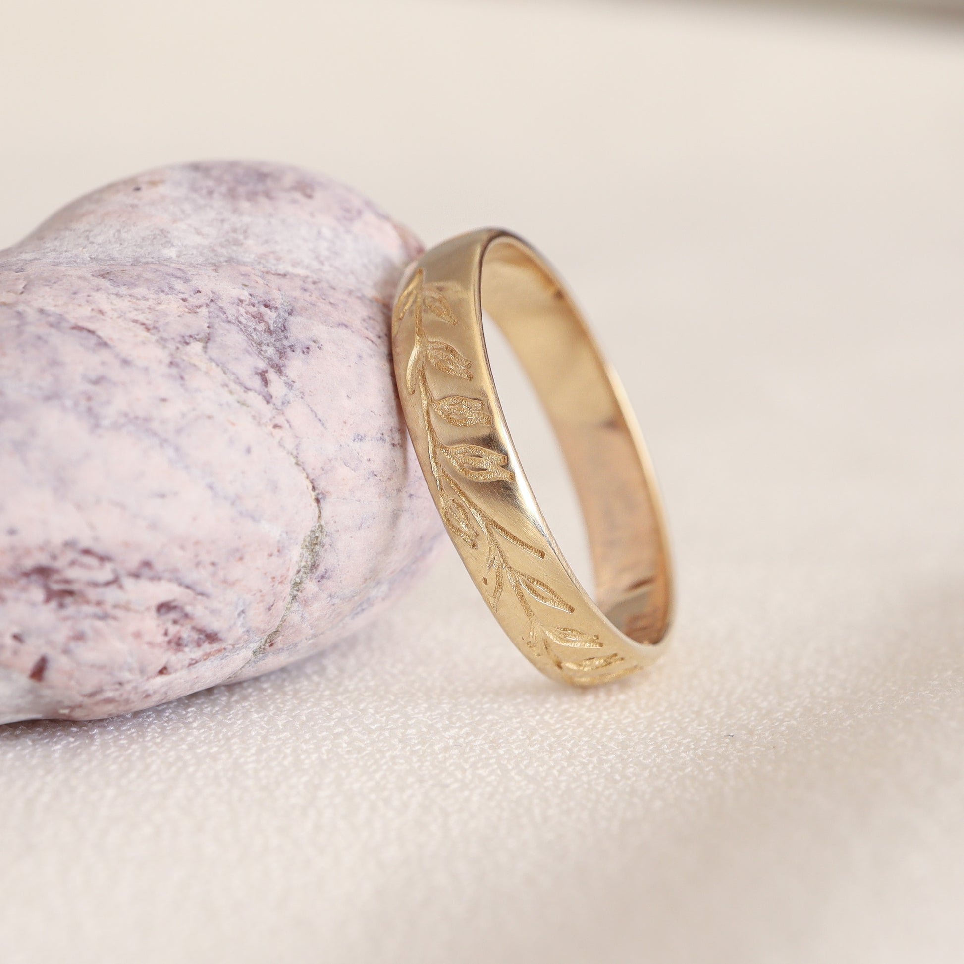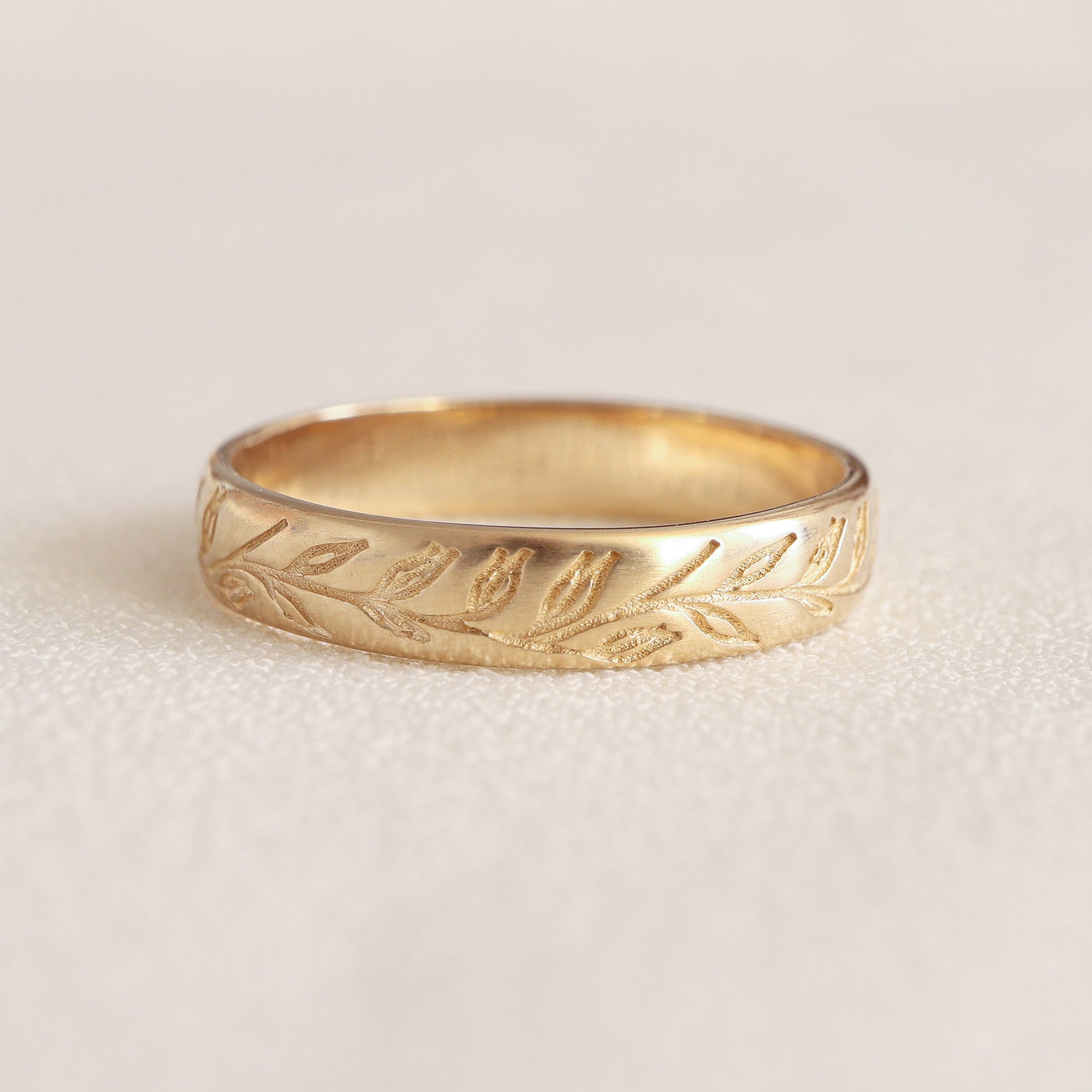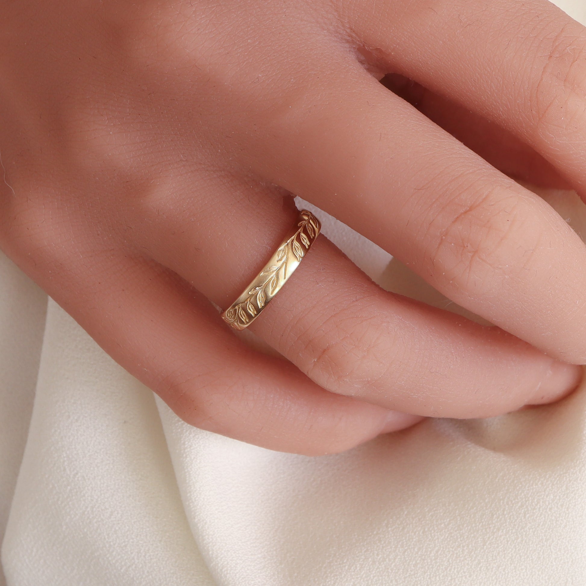 טבעת זהב צהוב עם חריטות עדינות של שיבולת שועל, בעיצוב על-זמני ובגימור מט חמים. השיבולת מסמלת שפע, התחדשות וצמיחה – תזכורת יומיומית להתחזקות פנימית והתחלות חדשות. טבעת יוניסקס אלגנטית, מתאימה לנשים ולגברים, מושלמת כטבעת נישואין או כפריט אישי מלא משמעות, המחבר לטבע ולפשטות.