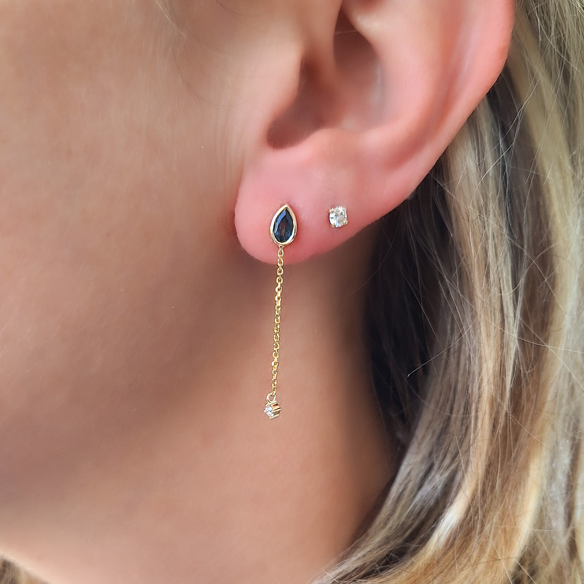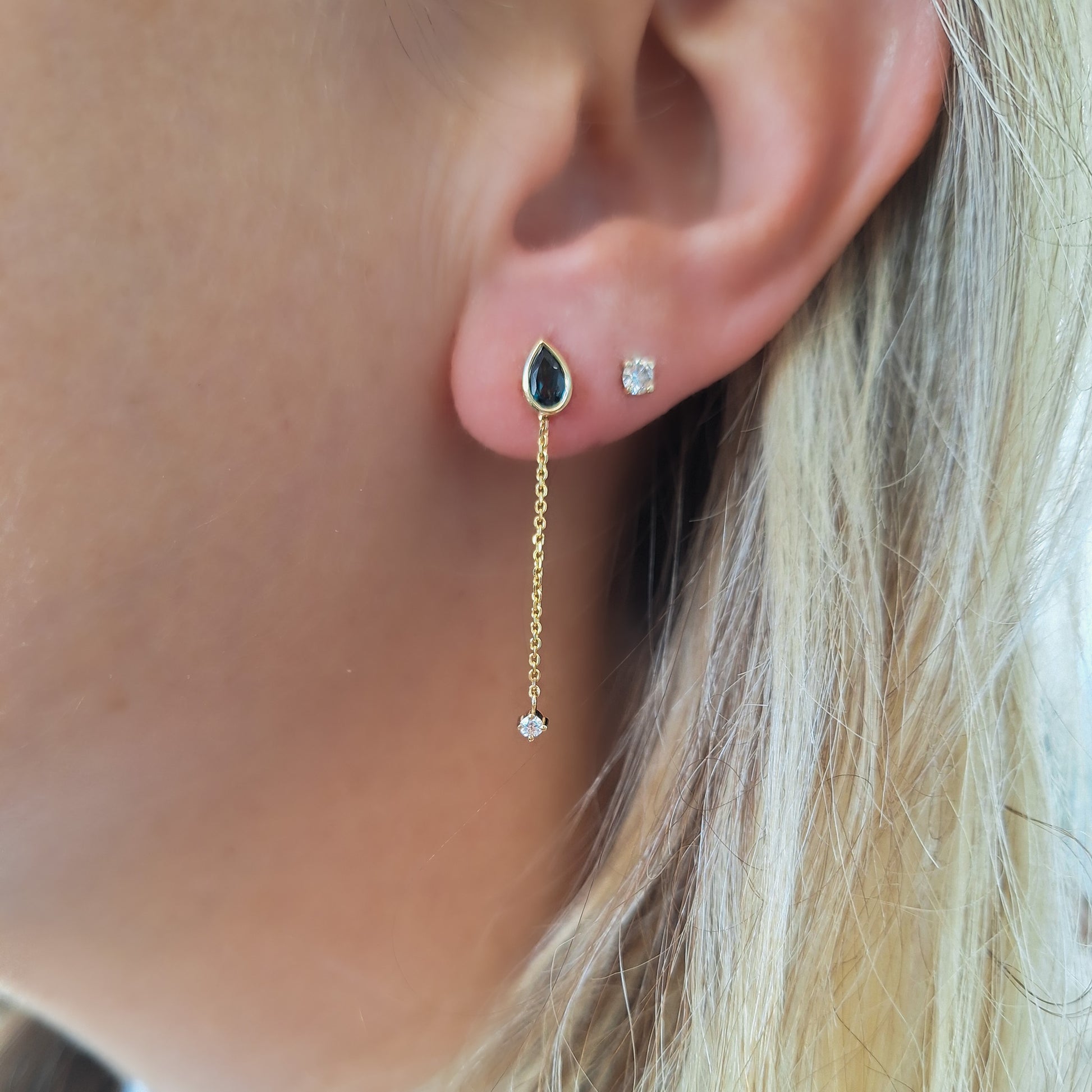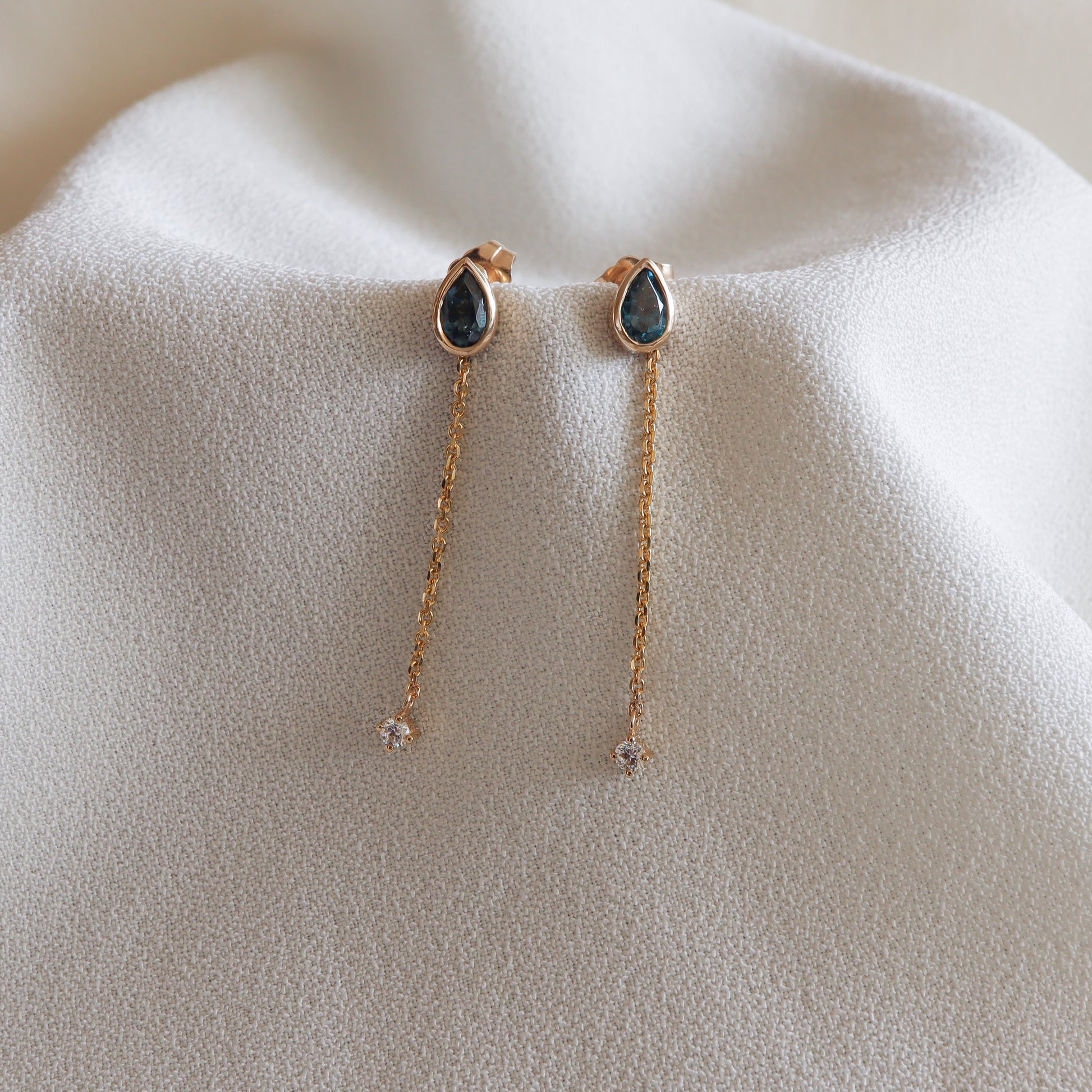 עגילי טיפה נופלים | טופז כחול ויהלום